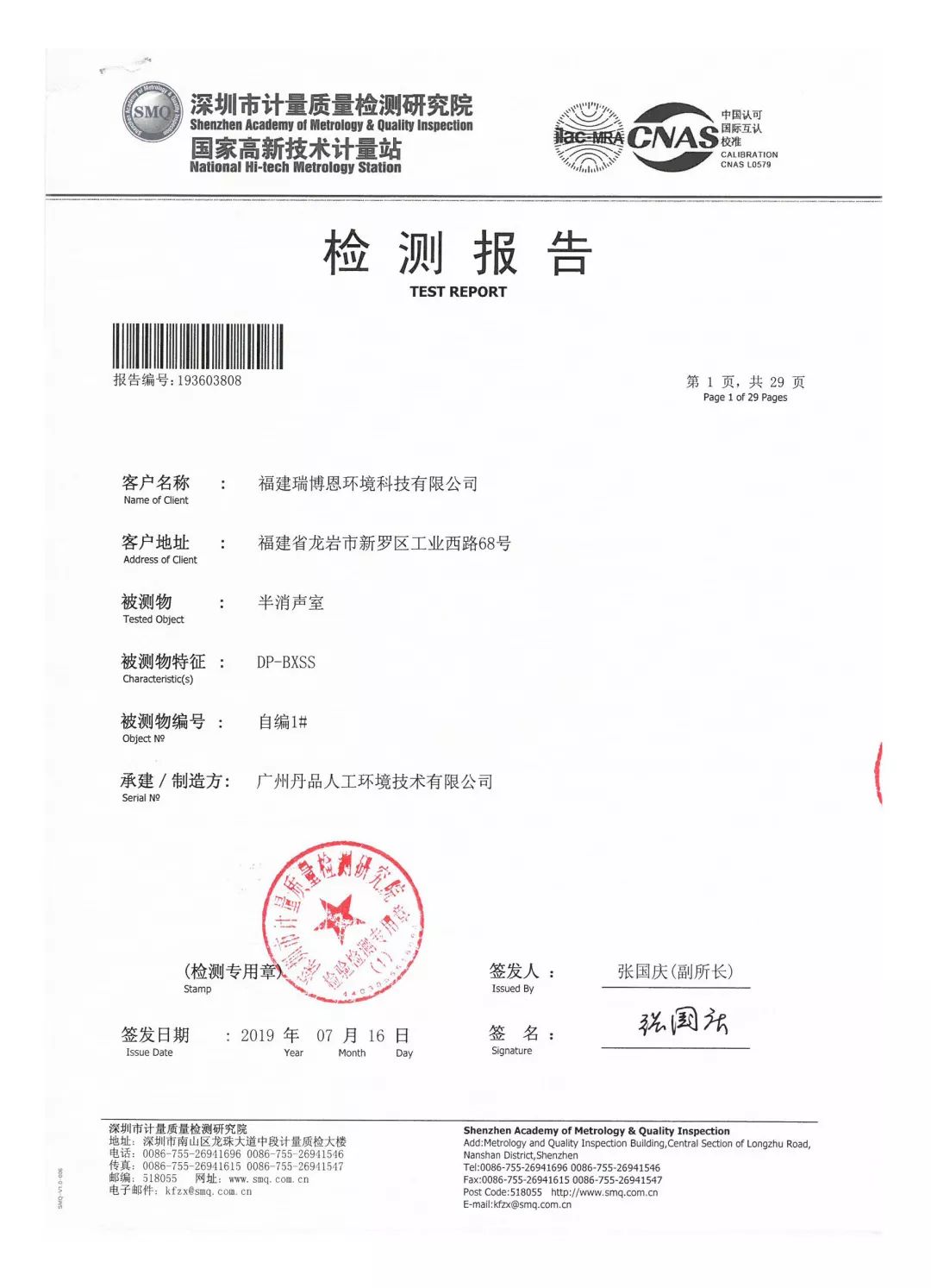瑞博恩半消声室检测报告