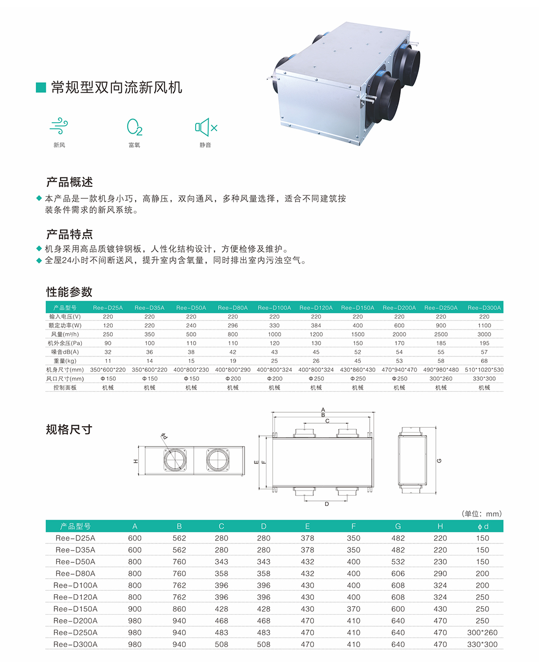 常规型双向流新风机