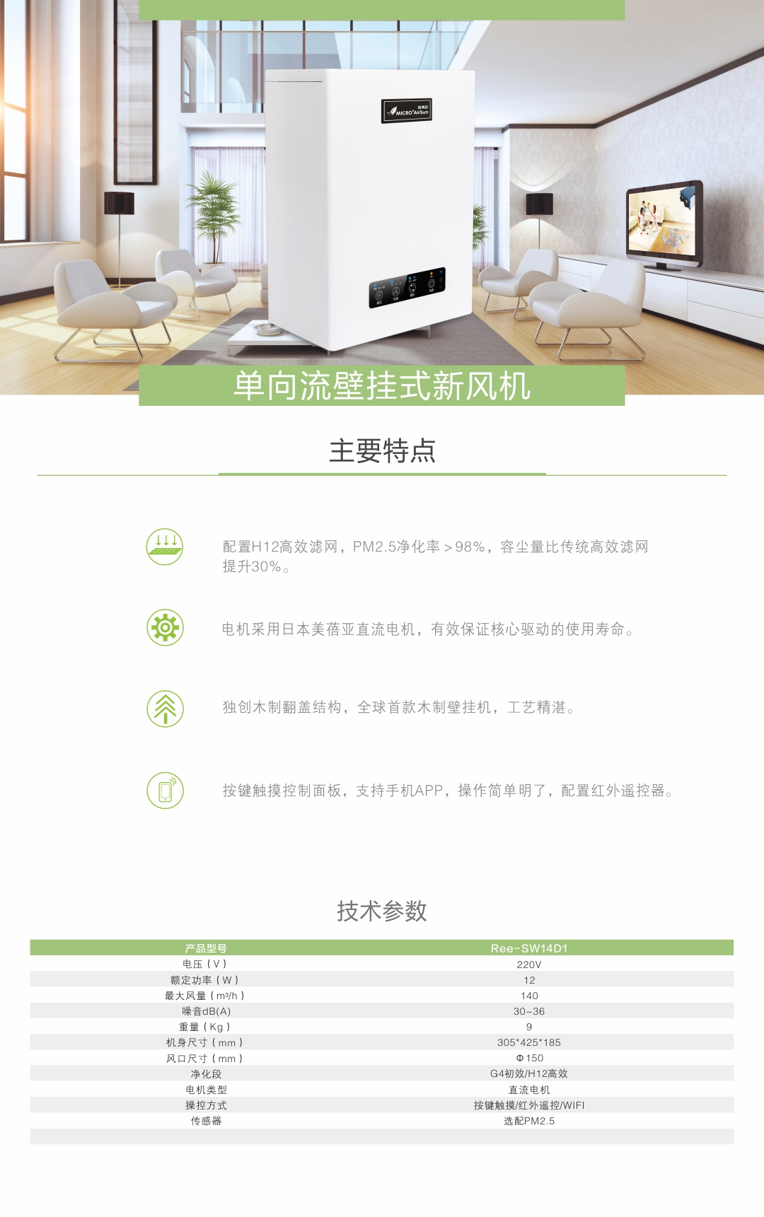 单向流壁挂式新风机